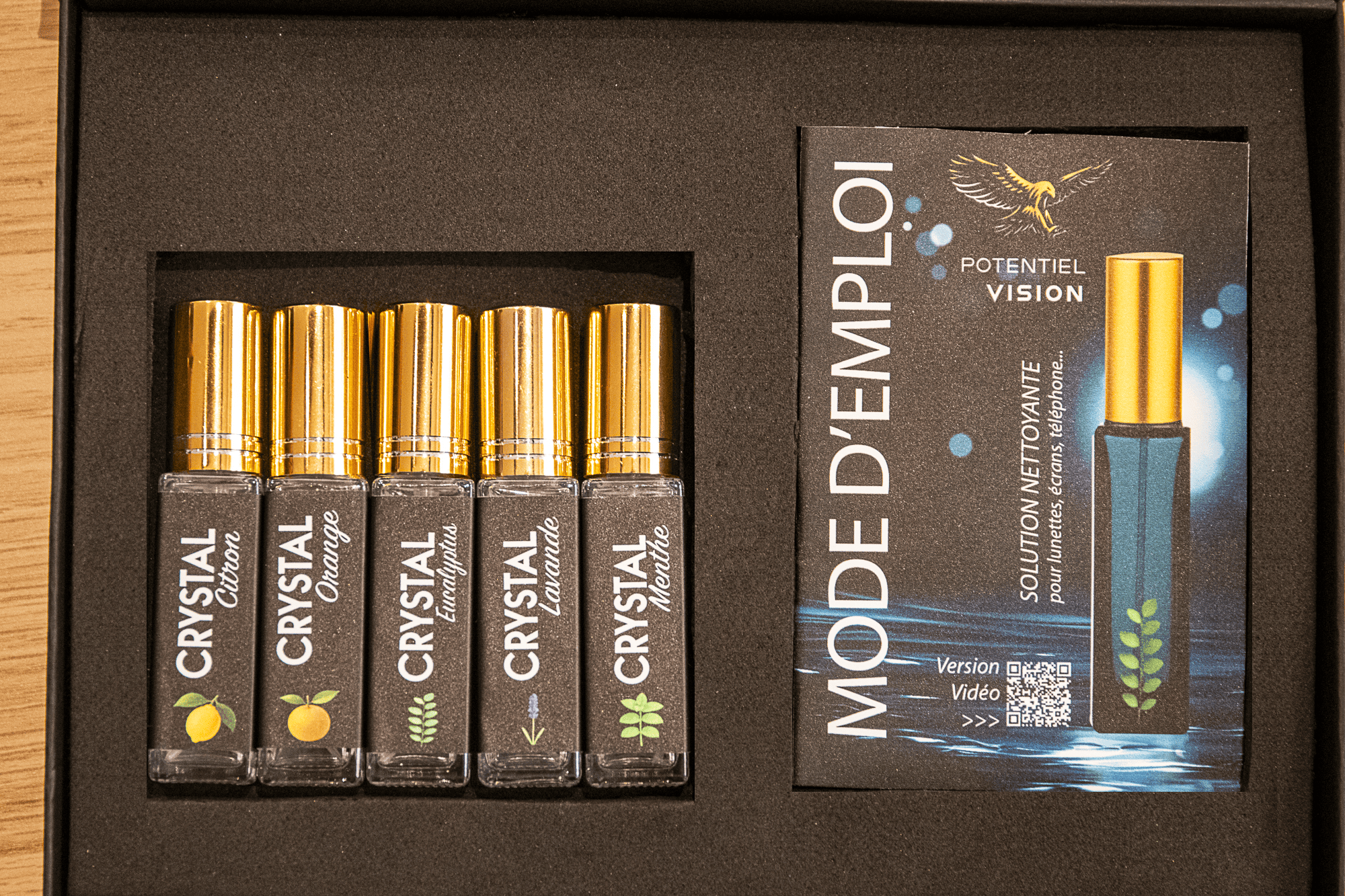Développé par Potentiel Vision, notre spray Cristal est enrichi en huiles essentielles pour un nettoyage efficace et une odeur fraîche.
